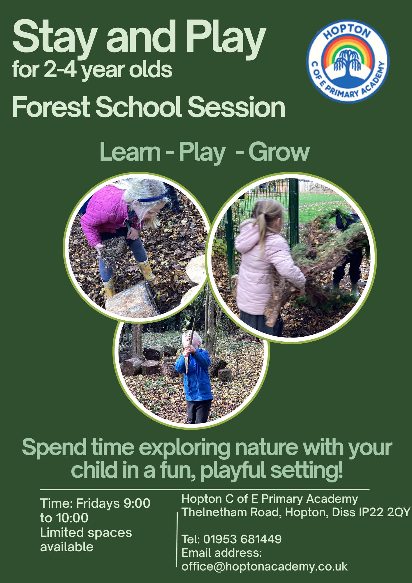 We are now offering a stay and play for children aged 2 to 4 at school. This is open to all families, even if your children do not currently attend here: